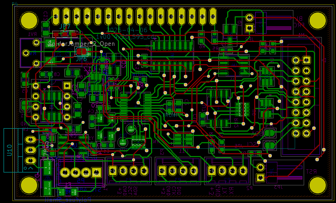 The board can be built either for SPI mode by omitting the CH32V203 (an STM32F0 would also work), or for UART / I2C / CANbus modes by adding it.