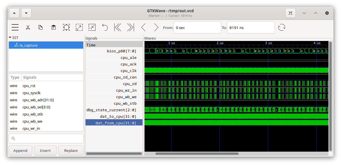 I used my On-FPGA Logic Analyser extensively throughout the bringup process on this project.