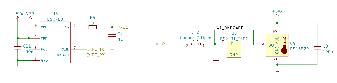 The 1-Wire interface is fairly simple, based on a DS2480B (with a jumper to connect an onboard DS2431 EEPROM and DS18B20 temperature sensor).
